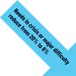 Overall stability improves (score shifts from 3.7 to –4.2), reducing future demand on crisis services.